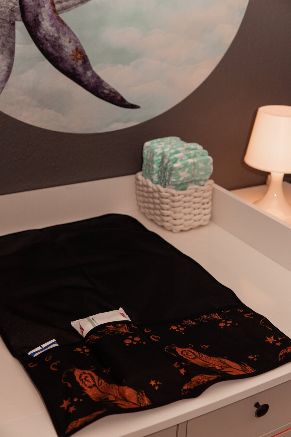 Fabricado con materiales repelentes al agua de alta calidad. KOKADI Cambiador para un lugar seguro e higiénico para cambiar a tu bebé. El fondo KOKADI La tela del cabestrillo garantiza la estabilidad. El cambiador también dispone de prácticos compartimentos para guardar todos los utensilios importantes que necesitas al cambiarte.