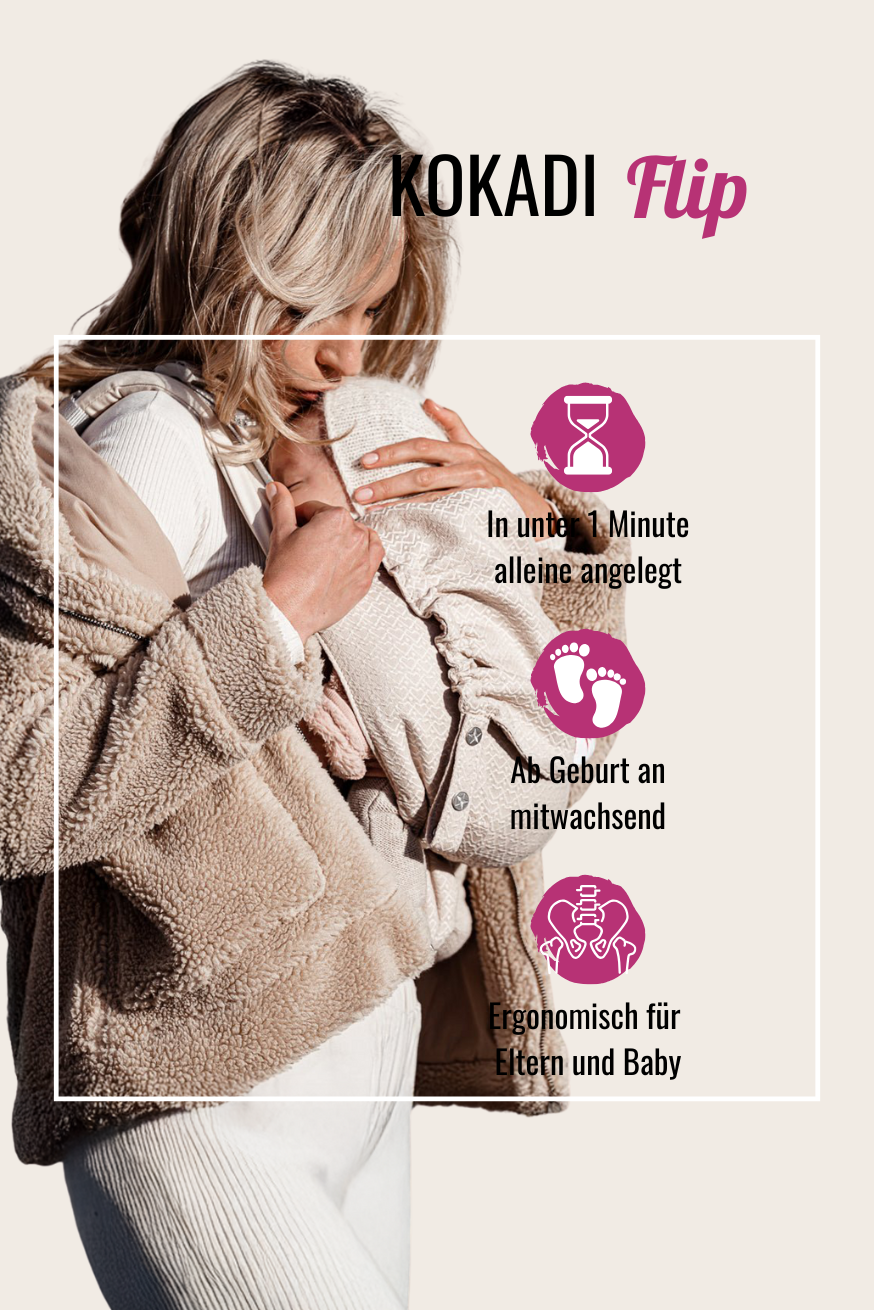 Algunas cosas nos transportan sin que las sintamos, porque se sienten tan naturales como el latido del corazón. el KOKADI Flip es exactamente eso: un cómodo portabebés totalmente preatado que te brinda cercanía sin restringir tu libertad de movimiento.