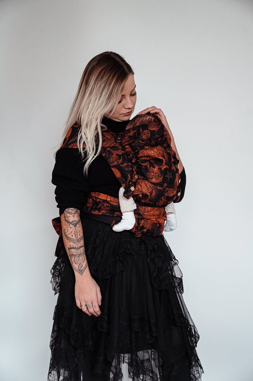 Mit Skulls x Florian trägst du mehr als nur dein Baby – du trägst deine Haltung. Du lebst den Gegensatz aus Stärke und Zärtlichkeit, Dunkelheit und Glanz. Jeder Handgriff, jeder Knoten, jedes Aufbinden wird zu einem Ritual voller Liebe und Selbstbewusstsein.