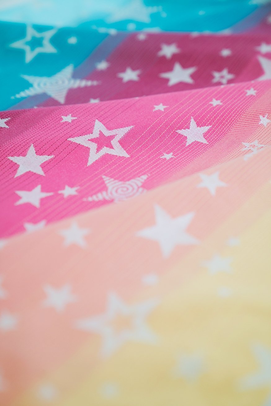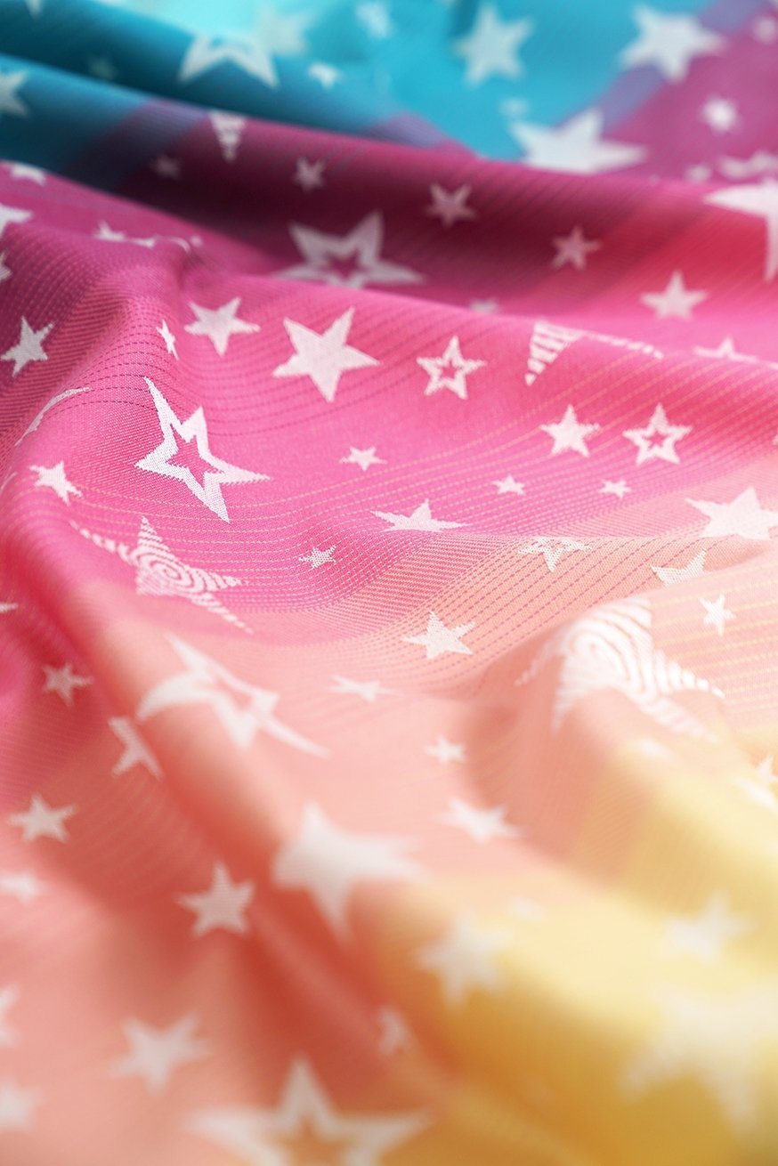 Hannah Stars tiene un precioso degradado con estrellas y es perfecto Portabebé para recién nacidos, pero también para bebés más grandes. La mezcla de 50% algodón orgánico y 50% viscosa (de pulpa de bambú) lo hace estable y tierno. Fantástica comodidad y lo mejor. KOKADI La calidad es tuya con este. TaiTai garantizado!