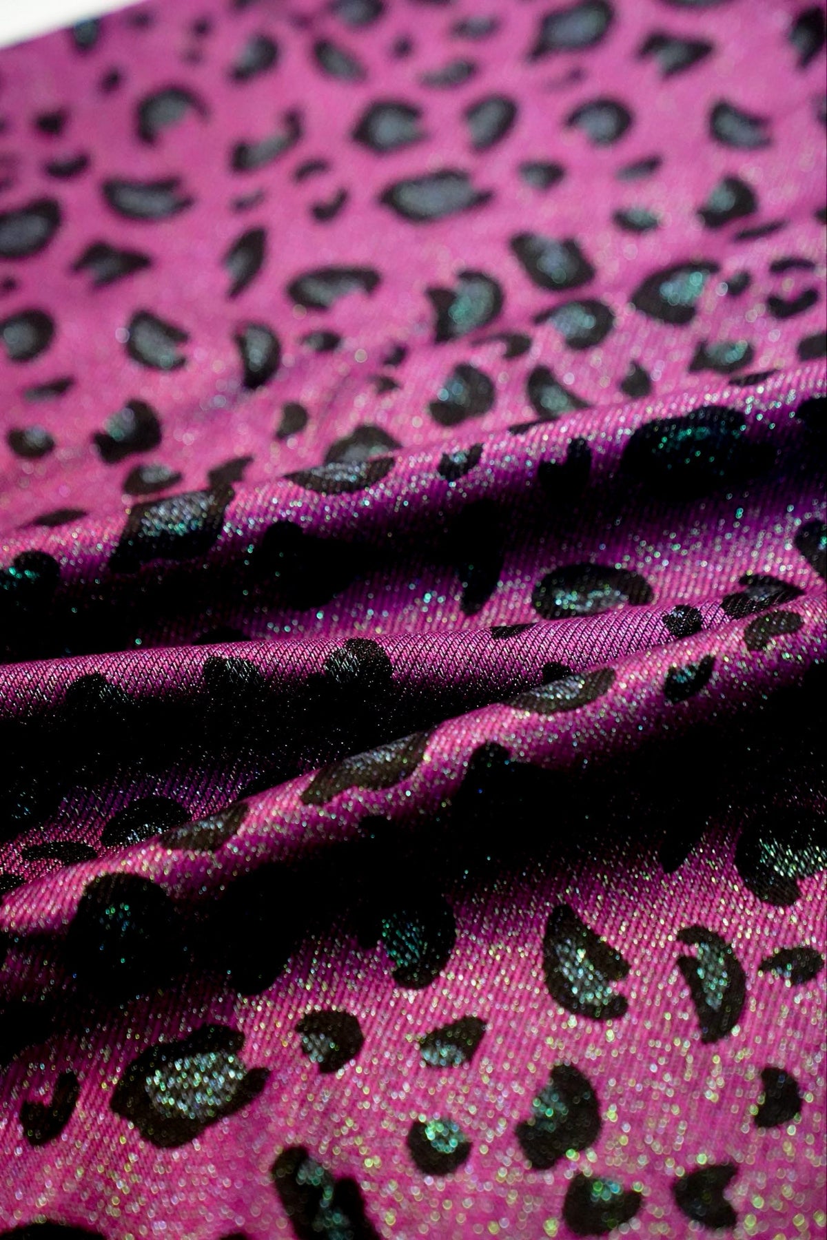 Tejido sedoso y fluido y un moderno estampado de leopardo en rosa brillante intercalado con brillantes hilos de purpurina verde. Este Portabebé hará que tu corazón lata más rápido: ¡eso es Safari Caspar!